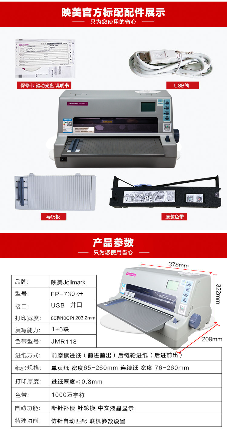 映美(Jolimark)FP-730K+ 24针80列全钢高性能票据打印机