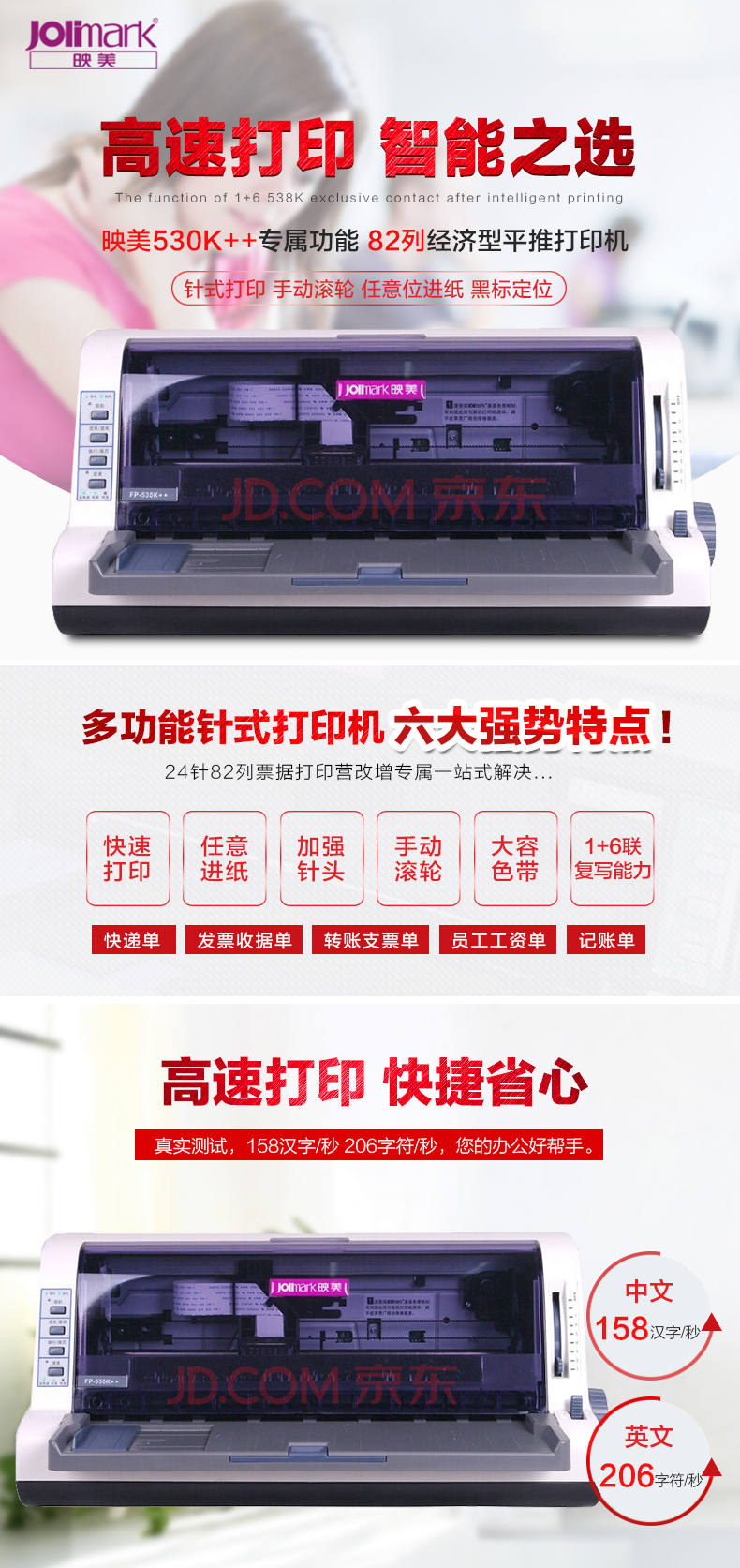 映美(Jolimark)FP-530K++ 24针82列 高速票据打印机